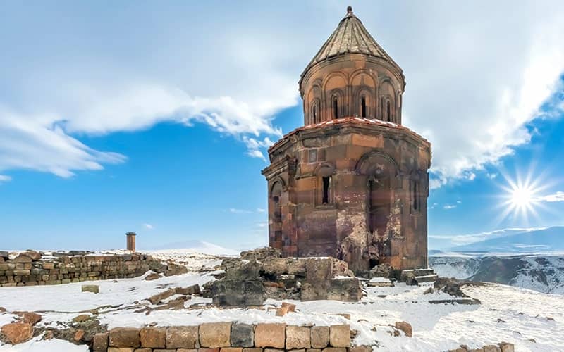 Otelimizde alacağımız sabah kahvaltısı sonrası Ani harabelerine hareket ediyoruz. Ermenistan sınırımızı çizen Arpaçay’ının dibinde bulunan; Ermeni ve Selçuklu kültürüne ait anıtsal yapılarıyla ünlü kentte; Katedrali, Surp Kirkor ve Surp Pirgiç (Keveli Kilise) Kiliselerini, Menücehr Camini ve Kervan sarayı’nı geziyoruz. Ardından Çıldır Gölü' ne hareket ediyoruz. Yolumuz üzerinde bulunan peynirleri ile ünlü Malakan ve Yalınçay köylerini panaromik olarak görüyoruz. Gerçek üstü izlenimi veren bu durağımızda yaklaşık 2000 metredeki buz tutmuş Çıldır Gölü’nde dileyen misafirlerimiz kızak turu yapabilirler. (ekstra) Kızakla kayan, cirit oynayan, ata binen ve balık tutan insanları fotoğrafladıktan sonra Kars şehir merkezine hareket. Kars merkezde Kars Kalesi, Taş Köprü, Kars Müzesi ve Alexander Nevski Kilisesi(Fethiye Cami)’nin rehberimiz eşliğinde gezilmesi akabinde Karsın geniş ve planlı sokaklarında yürüyerek yapacağımız gezimizde Rus dönemi taş yapılarından Vali Konağı, PTT Binası, Ortodoks Kilisesi (Merkez Cami), Demir Köprü, İsmet Paşa İlköğretim Okulu, Hekim Evi (Opera Binası), Fevzi Paşa İlköğretim Okulu’nu panoramik olarak görüp fotoğrafladıktan sonra otelimize hareket ederek yerleşiyoruz. Akşam yemeği sonrasında dileyenlerle Kafkas gecesine katılıyoruz. Konaklama Kars’da ki otelimizde.